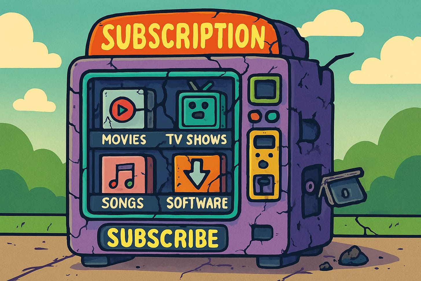 A vending machine only looks inevitable until someone builds a world where the hum is no longer necessary. That world is arriving category by category, in the decisions of people who opened their bank statements, in the products of builders who charged once and meant it, and in the economics of intelligence that finally made building something better cheaper than maintaining something extractive.
